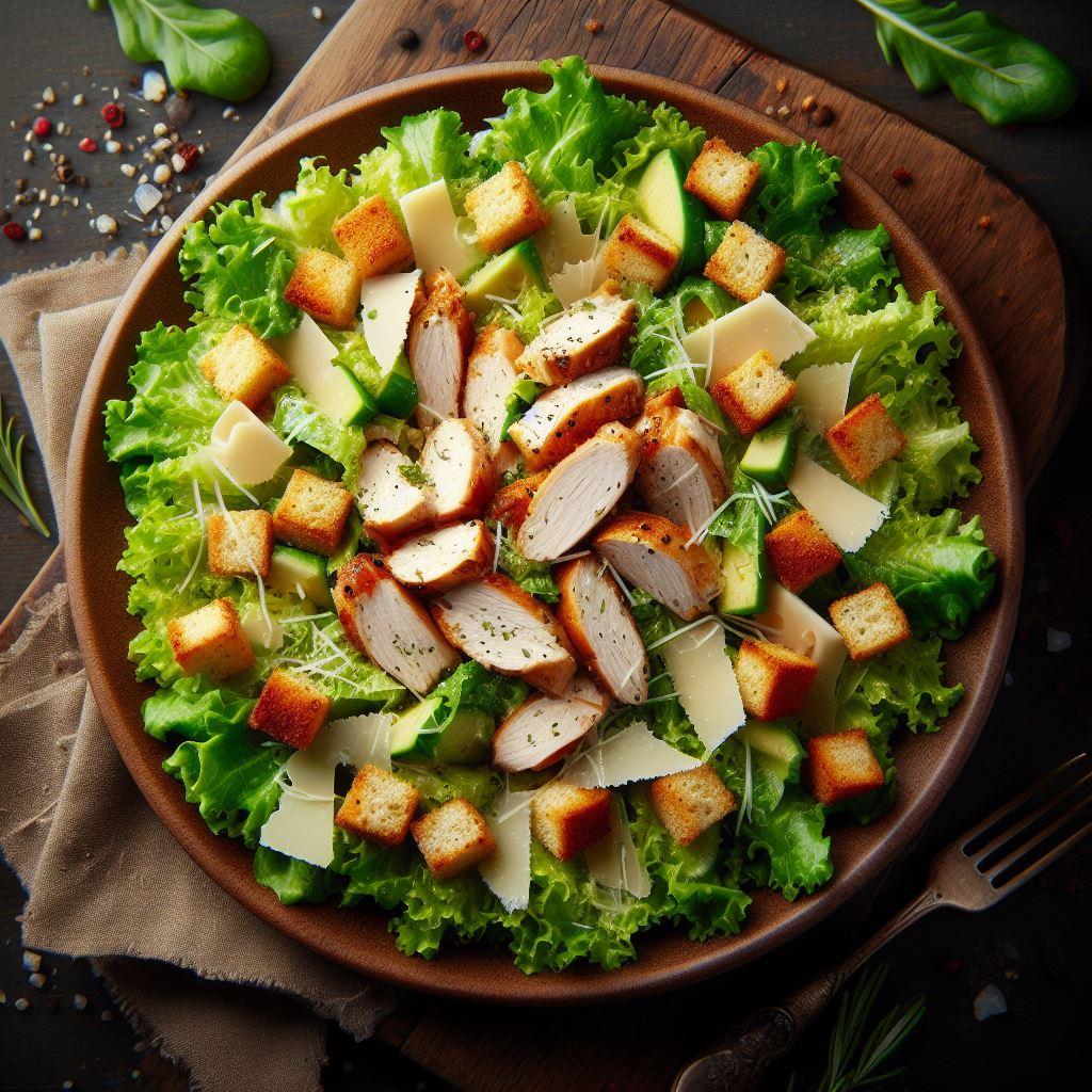Crisp romaine lettuce, crunchy croutons, delicious chicken strips and loaded with plenty of sharp parmesan cheese.